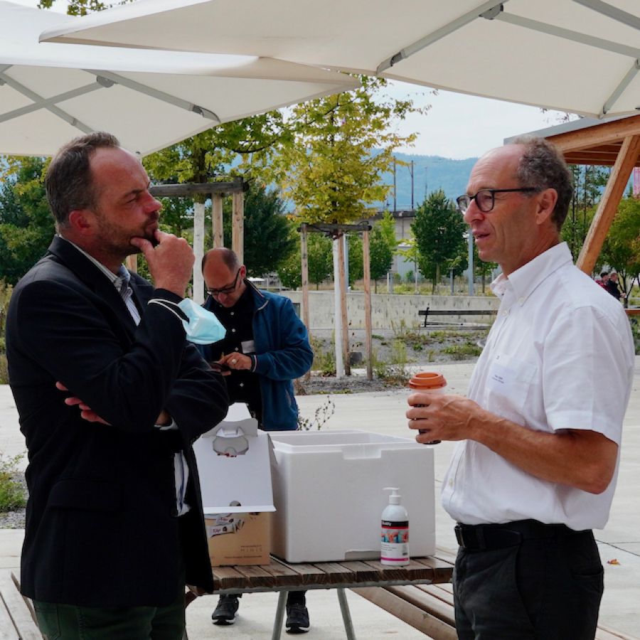 Über Erfahrungen und Lösungsansätze wurde berichtet und die erste Verbundlüftung vom Hochbauamt der Stadt Zürich konnte auf dem Rundgang live erlebt werden.